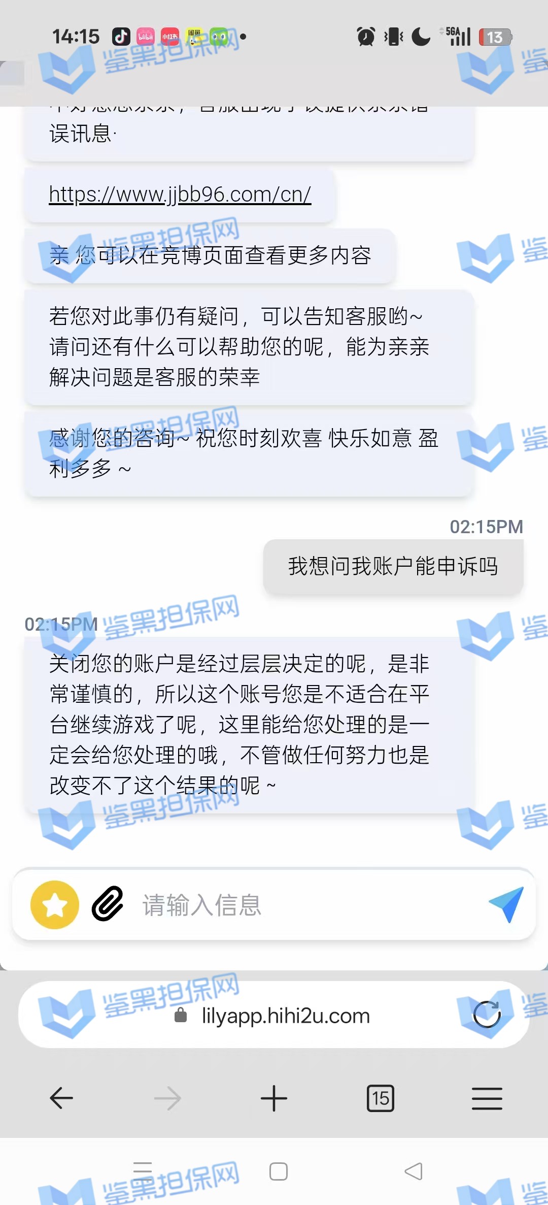 3、鉴黑担保网通过不同渠道与该平台相关负责人取得联系,关于这个会员的情况进行交涉,对方表示是风控部门检测到该会员的异常投注,扣除所有非法获利金额,按照游戏条例可在不通知的情况下进行冻结账号,维权专员让提供官方违规游戏进行复查核实,对方无法提供且拒绝更多交涉,本金也不愿意退回,可见是该会员盈利金额较多,平台找“借口”进行黑款,行为极其恶劣!!!